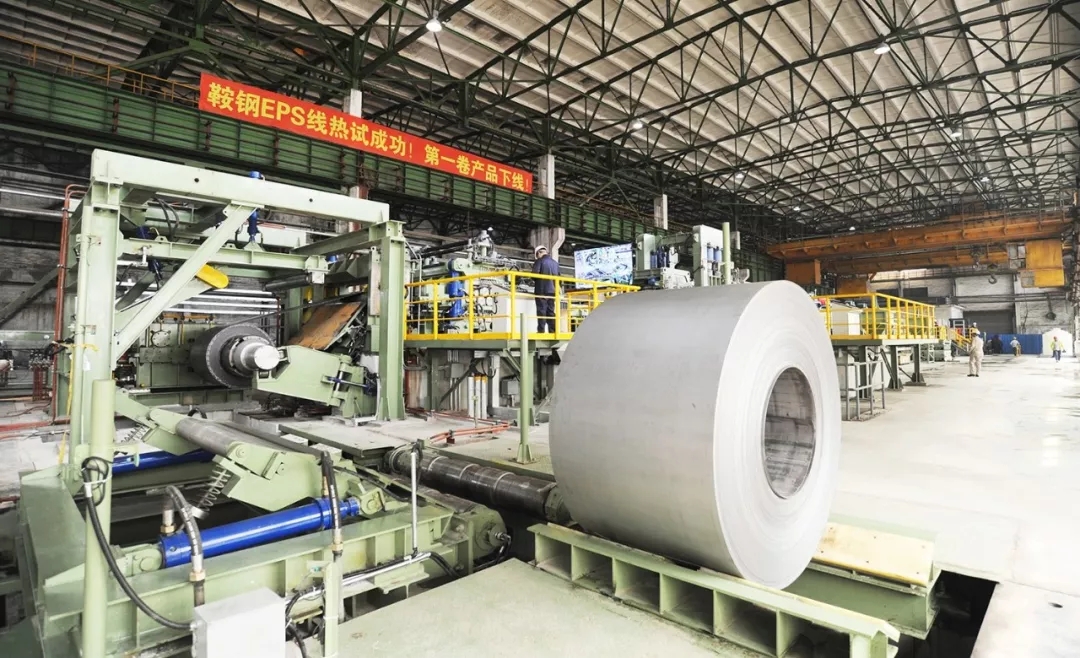 5月31日15時(shí)40分,第一卷2.75mm×1025mm免酸洗鋼卷在鞍鋼股份熱軋帶鋼廠順利下線,這標(biāo)志著鞍鋼股份首條EPS(鋼卷表面免酸洗)處理線一次熱負(fù)荷試車成功。