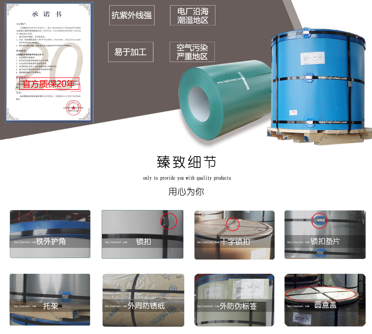 近年來(lái),國(guó)內(nèi)開(kāi)始盛行以三氟氯乙烯和乙烯酯單體共聚的含氟樹(shù)酯,大量就用于建筑面積的外墻和金屬板,由于使用易水解的乙烯酯單體和氟的含量較PVDF低(30%左右),因此基耐候性與PVDF比較,有一定的差距。我公司所供應(yīng)的寶鋼,燁輝,聯(lián)合等國(guó)內(nèi)大型鋼廠生產(chǎn)的氟碳涂層,其涂層PVDF含量量不小于70 %(其它為丙稀酸樹(shù)酯)PVDF氟碳彩鋼板,提供20年質(zhì)量保證書,保證在20年內(nèi)涂層不脫落,不粉化,不龜裂,不退色。