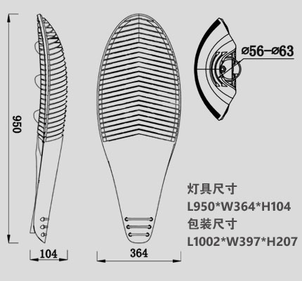 | 燈具尺寸(mm) | L950*W364*H104 |