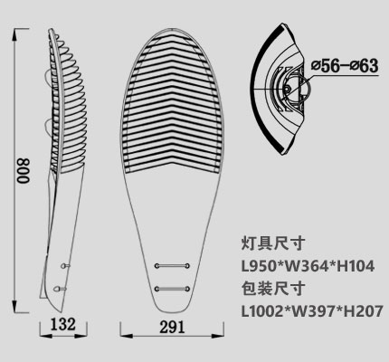 | 燈具尺寸(mm) | L800*W291*H132 |
