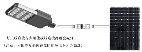 ●當(dāng)燈頭與太陽能板連接好,則燈會自動運行,夜晚自動亮燈,白天自動關(guān)燈