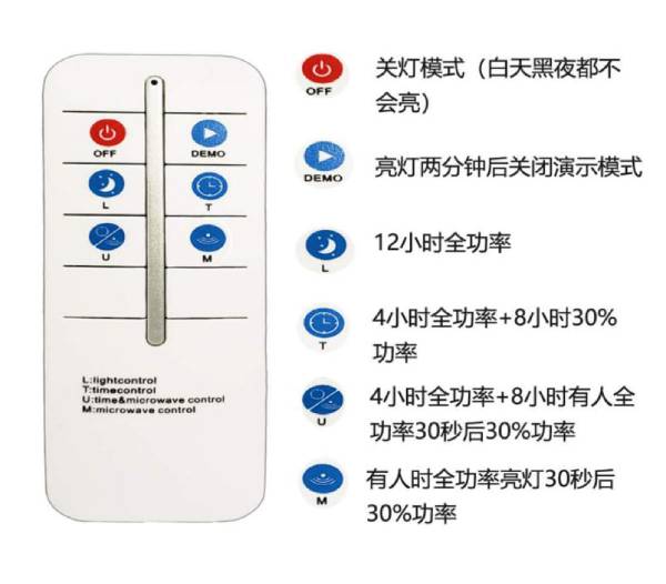 采用無人機(jī)遙控方案,遙控距離可達(dá)30米,可直接穿透障礙物,四種亮燈模式可供選擇,可根據(jù)季節(jié)陽光的模式。