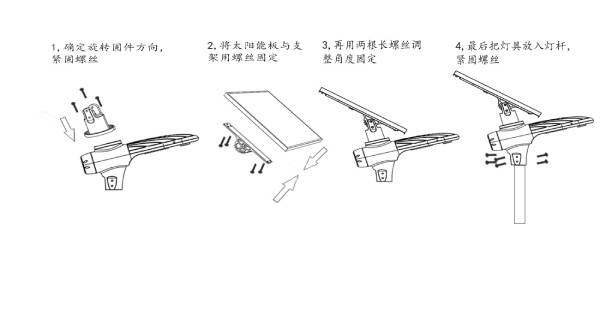 1.安裝時太陽能板可根據(jù)所處地區(qū)情況調(diào)節(jié)最佳受光角度。安裝組件時盡量輕拿輕放,嚴(yán)禁碰撞,敲擊,以免損壞。