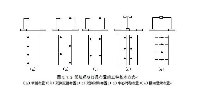燈桿的排列方式主要分為以下幾種:①單側分布;②雙側交錯分布;③雙側對稱分布;④中心對稱分布;⑤橫向懸索分布;這五種分布方式。