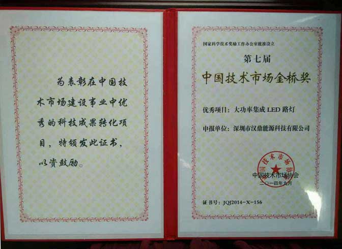 漢鼎LED照明:第七屆金橋獎(jiǎng)?lì)C獎(jiǎng)大會(huì)于今年11月在成都隆重舉行,經(jīng)層層篩選和“金橋獎(jiǎng)”評(píng)委會(huì)評(píng)審,漢鼎大功率集成LED路燈榮獲第七屆中國(guó)技術(shù)市場(chǎng)協(xié)會(huì)金橋獎(jiǎng)優(yōu)秀項(xiàng)目獎(jiǎng)。