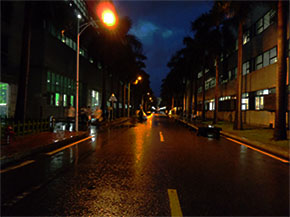 80W LED路燈代替原有250W高壓鈉燈,共計(jì)6盞,桿高6米,桿距20米,路面平均照度比原來用高壓鈉燈照度高11 lx。