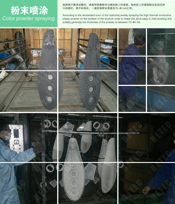 According to the demanded color of the customer,evenly spraying the high thermal conductive plastic powder on the